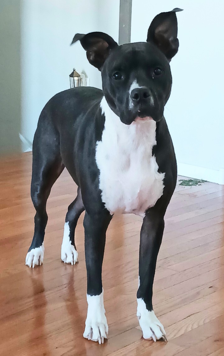 Bubby is a fixed 2 year old Staffordshire bull terrier. Vaccinated, Dog door trained. He is extremely loving and wants to be close at all times. Would be best with adults who can spoil him with attention or adults with another dog he can get constant attention from. He would like a big yard with shade. He is a black dog and gets hot easily. He likes to be indoors and hates to be locked out. He loves his weekly bath. *He has skin issues with most food so he will need a hydrolyzed diet or there is only 1 regular dry food that does not contain any of his allergens. I will add picture of his food he is on. He has a vet who can prescribe the hydrolized food to you on a regular basis if you go that route instead. *Pork and Tuna is the only scraps he can have, (((no chicken, no beef, no cheese, no milk, no peas, no chickpeas, no white potato, no wheat, no eggs, no oats))). His diet is extremely important or he will get skin infections. *If the bag of Rachel ray lamb meal and brown rice food says 9 ingredient, it is the wrong one, it must say 6 ingredient on the bag and have no peas pictured in the upper right corner of the bag. Reason for rehoming is I have developed severe pmdd and I can’t care for him anymore. This could last for many years. He deserves better. I love him very much. I’m not well most of the time and when I am well I need to focus on my family and getting things done. Please text only